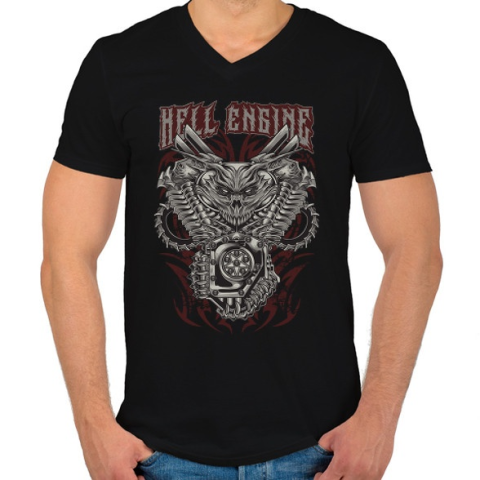1 kép PRINTFASHION Pokoli motor - Férfi V-nyakú póló - Fekete