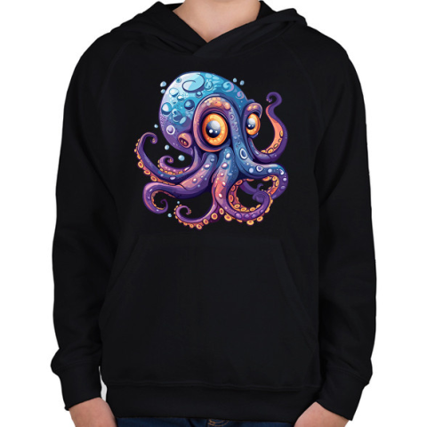 1 kép PRINTFASHION Polip - Gyerek kapucnis pulóver - Fekete