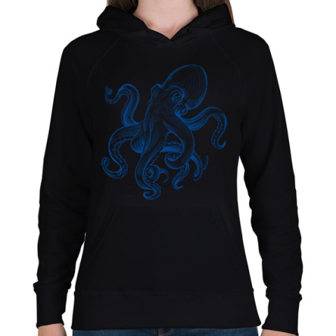 1 kép PRINTFASHION polip - Női kapucnis pulóver - Fekete