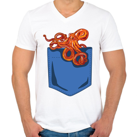 1 kép PRINTFASHION Polipos zseb - Férfi V-nyakú póló - Fehér