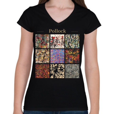 1 kép PRINTFASHION Pollock - részletek - Női V-nyakú póló - Fekete