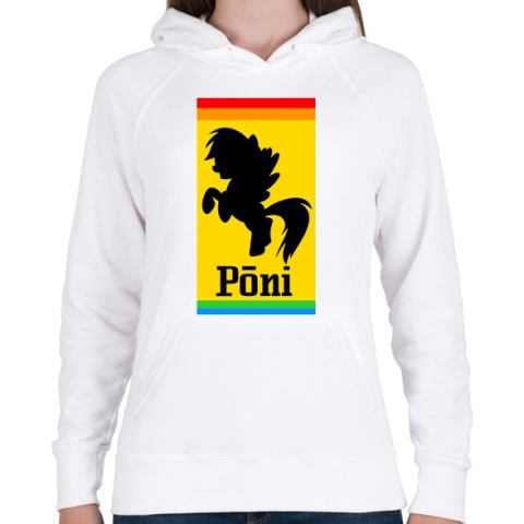1 kép PRINTFASHION Póni - Ferrari paródia - Női kapucnis pulóver - Fehér
