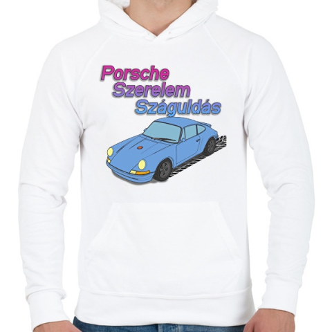 1 kép PRINTFASHION Porsche Szerelem Száguldás | Babakék Edition - Férfi kapucnis pulóver - Fehér