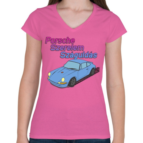 1 kép PRINTFASHION Porsche Szerelem Száguldás | Babakék Edition - Női V-nyakú póló - Rózsaszín