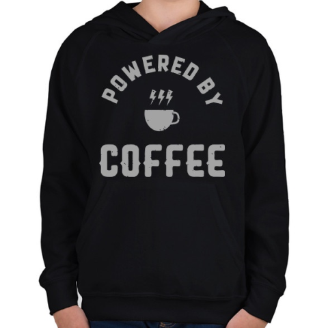 1 kép PRINTFASHION Powered by Coffee - Gyerek kapucnis pulóver - Fekete