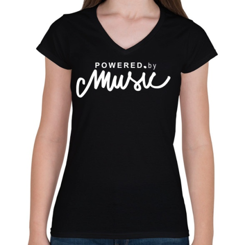 1 kép PRINTFASHION Powered by music - Női V-nyakú póló - Fekete