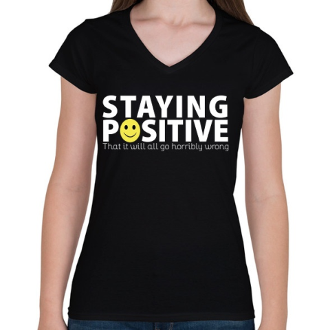 1 kép PRINTFASHION Pozitív - Női V-nyakú póló - Fekete