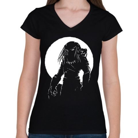 1 kép PRINTFASHION Predator - Női V-nyakú póló - Fekete