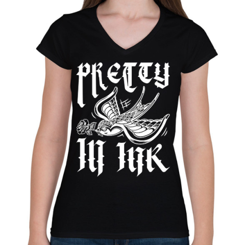 1 kép PRINTFASHION Pretty in ink - Női V-nyakú póló - Fekete