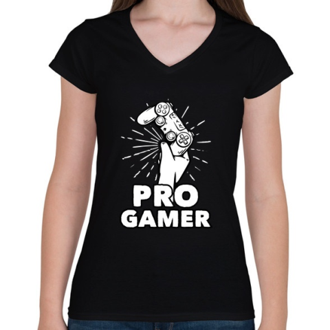 1 kép PRINTFASHION Pro Gamer - Női V-nyakú póló - Fekete