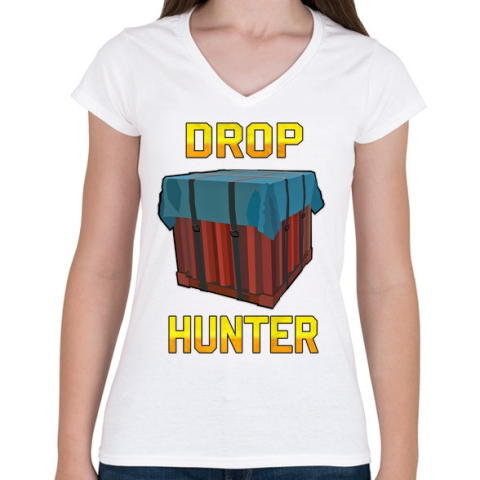 1 kép PRINTFASHION PUBG - Drop Hunter - Női V-nyakú póló - Fehér
