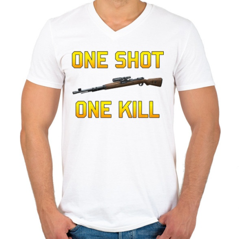 1 kép PRINTFASHION PUBG - One Shot, One Kill - Férfi V-nyakú póló - Fehér
