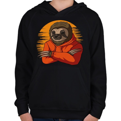 1 kép PRINTFASHION Pulóveres lajhár - Gyerek kapucnis pulóver - Fekete