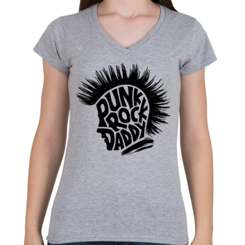 1 kép PRINTFASHION Punk Rock Apa - Női V-nyakú póló - Sport szürke