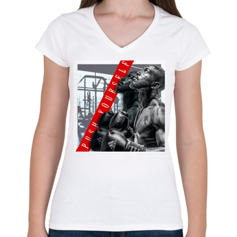 1 kép PRINTFASHION PUSH YOURSELF - Női V-nyakú póló - Fehér