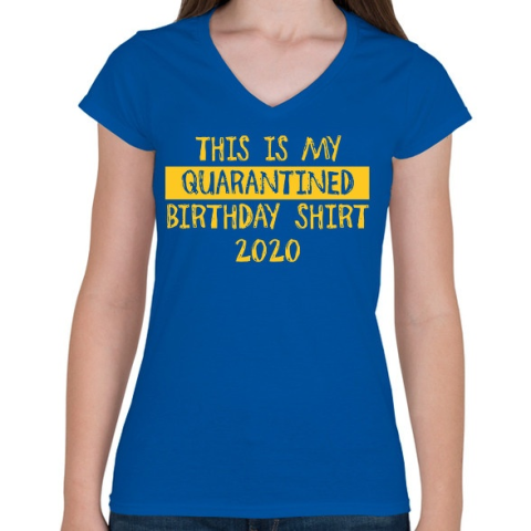 1 kép PRINTFASHION Quaratined birthday - Női V-nyakú póló - Királykék