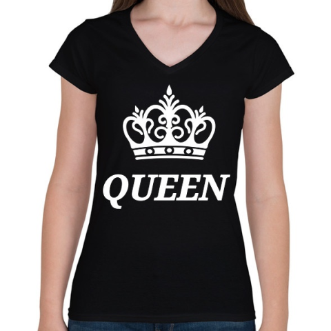 1 kép PRINTFASHION Queen - Női V-nyakú póló - Fekete