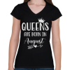 1 kép PRINTFASHION QUEENS are born in August - Női V-nyakú póló - Fekete
