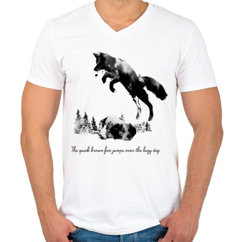 1 kép PRINTFASHION Quick brown fox - Férfi V-nyakú póló - Fehér