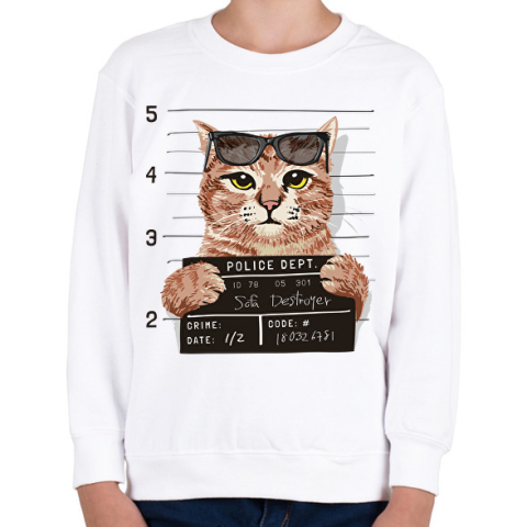 1 kép PRINTFASHION Rabosított macska - Gyerek pulóver - Fehér