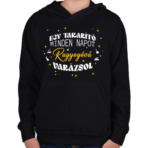 1 kép PRINTFASHION Ragyogóvá varázsol - Gyerek kapucnis pulóver - Fekete