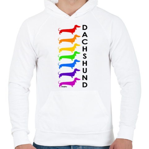1 kép PRINTFASHION Rainbow dachshund - Férfi kapucnis pulóver - Fehér