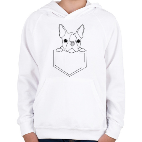 1 kép PRINTFASHION Rajzolt Boston terrier zsebben - Gyerek kapucnis pulóver - Fehér