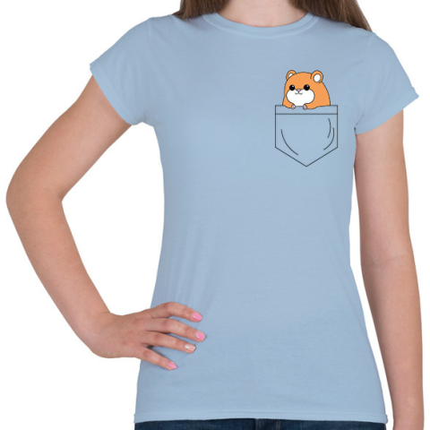 1 kép PRINTFASHION Rajzolt hörcsög zsebben - Női póló - Világoskék