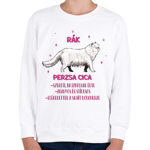 1 kép PRINTFASHION Rák - Perzsa cica - Gyerek pulóver - Fehér