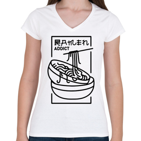 1 kép PRINTFASHION Ramen függő - Női V-nyakú póló - Fehér