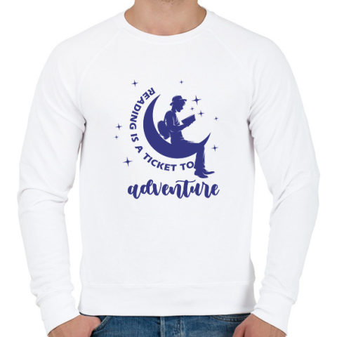 1 kép PRINTFASHION Reading is a ticket to adventure - Férfi pulóver - Fehér