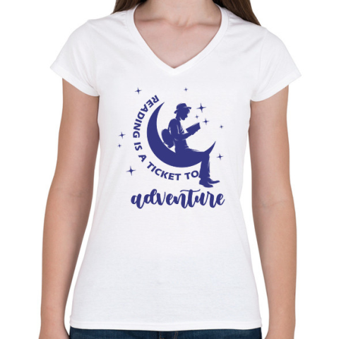 1 kép PRINTFASHION Reading is a ticket to adventure - Női V-nyakú póló - Fehér