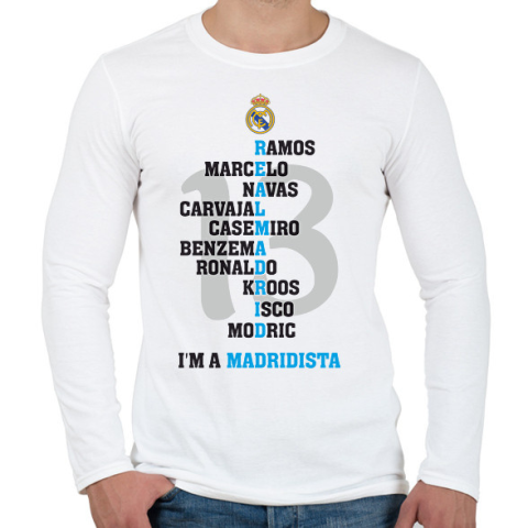 1 kép PRINTFASHION Real madrid - Férfi hosszú ujjú póló - Fehér