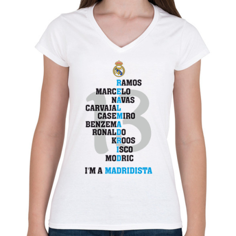 1 kép PRINTFASHION Real madrid - Női V-nyakú póló - Fehér