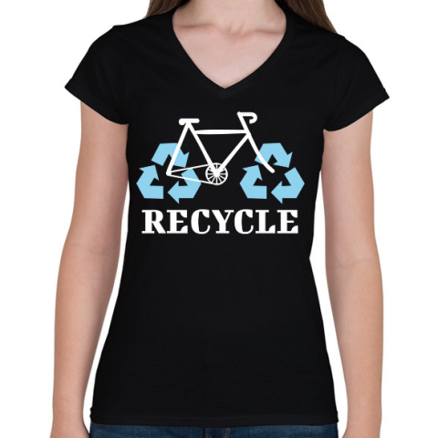 1 kép PRINTFASHION Recycle - Női V-nyakú póló - Fekete