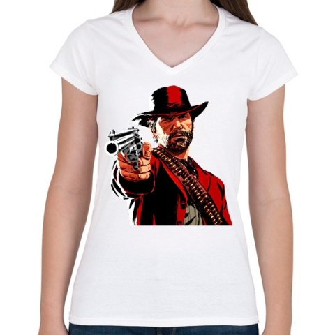 1 kép PRINTFASHION red dead redemption 2 - Női V-nyakú póló - Fehér