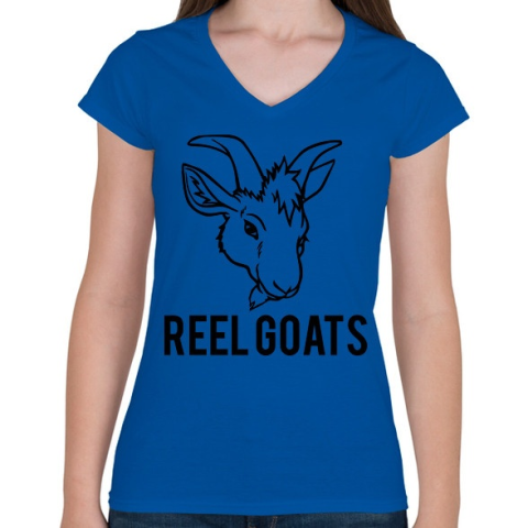 1 kép PRINTFASHION Reel Goats - Női V-nyakú póló - Királykék