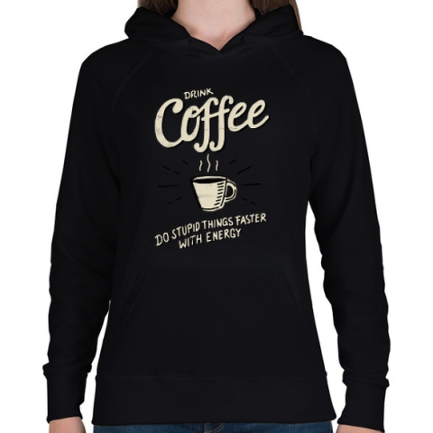1 kép PRINTFASHION Reggeli kávé - Női kapucnis pulóver - Fekete