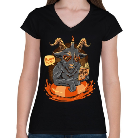 1 kép PRINTFASHION Relax a pokolban - Női V-nyakú póló - Fekete