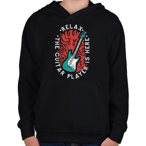 1 kép PRINTFASHION Relax - itt van a gitáros - Gyerek kapucnis pulóver - Fekete