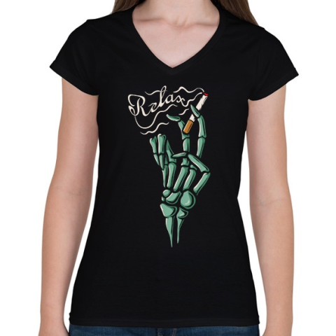 1 kép PRINTFASHION Relax - Női V-nyakú póló - Fekete
