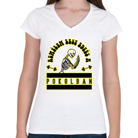1 kép PRINTFASHION Remélem lesz edzés - Női V-nyakú póló - Fehér