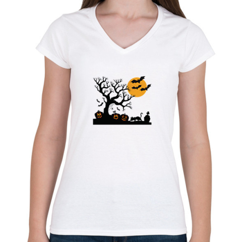 1 kép PRINTFASHION Rémisztő Halloween - Női V-nyakú póló - Fehér