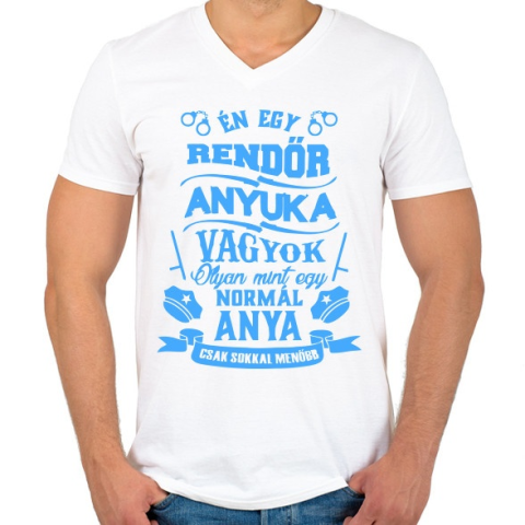 1 kép PRINTFASHION Rendőr Anyuka - Férfi V-nyakú póló - Fehér