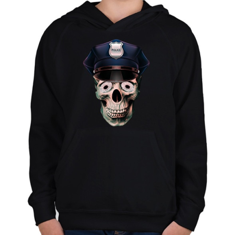 1 kép PRINTFASHION rendőr koponya - Gyerek kapucnis pulóver - Fekete