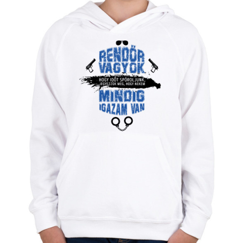 1 kép PRINTFASHION Rendőr vagyok - Gyerek kapucnis pulóver - Fehér