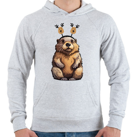 1 kép PRINTFASHION Rénszarvas bober - Férfi kapucnis pulóver - Sport szürke