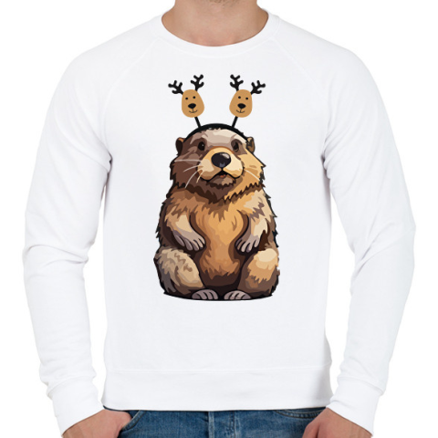 1 kép PRINTFASHION Rénszarvas bober - Férfi pulóver - Fehér