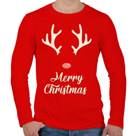 1 kép PRINTFASHION Rénszarvaska - Férfi hosszú ujjú póló - Piros