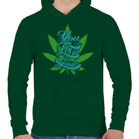 1 kép PRINTFASHION Repülni tudsz, ha elszívod. - Férfi kapucnis pulóver - Sötétzöld